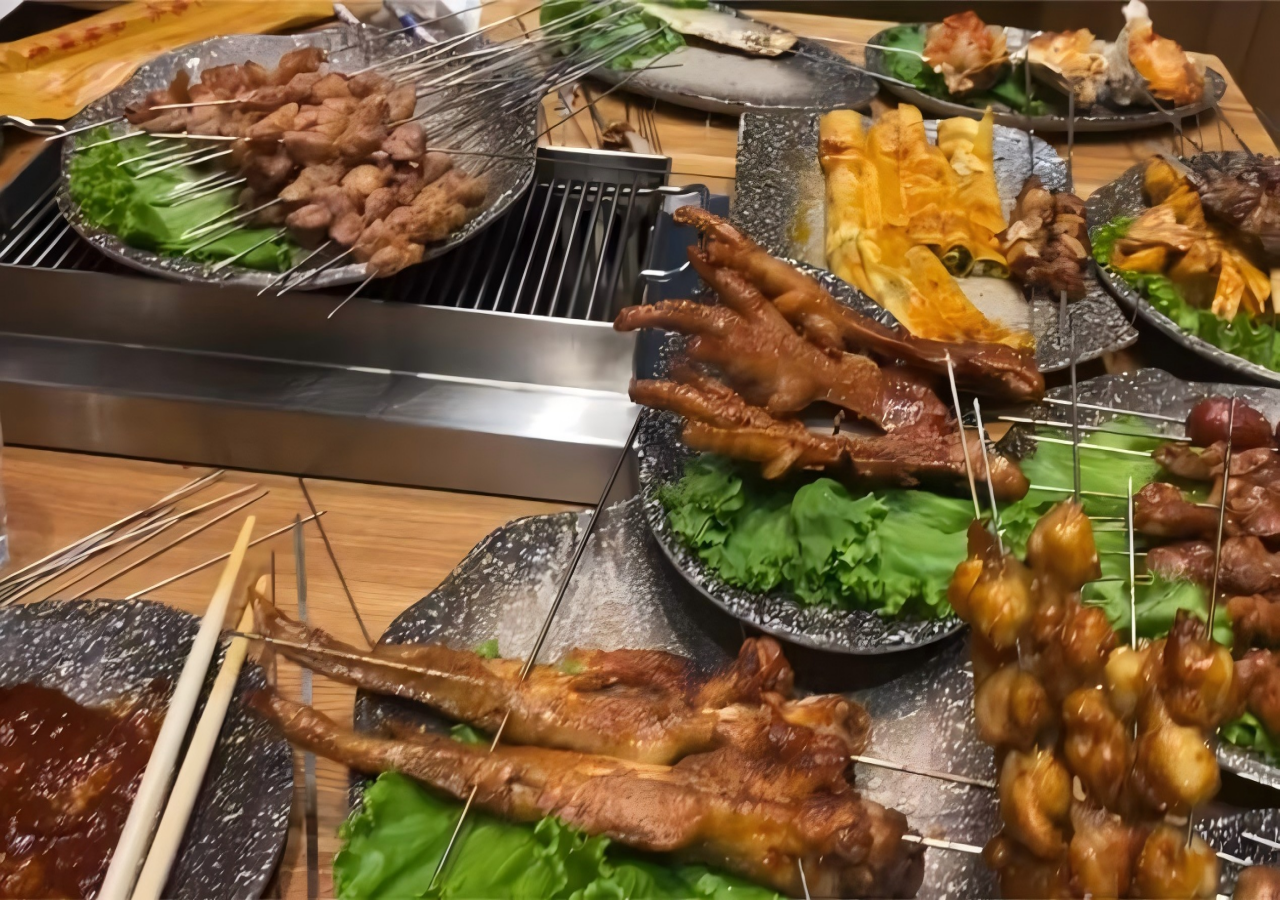 作为市级非物质文化遗产,锦州烧烤历经380余年传承,如今已成为全国7万余家门店、70万人就业的超级IP。其食材库涵盖100多种肉类、海鲜与蔬菜,从180天散养的“粮食羊”到现烤玉米、土豆,每一口鲜香都离不开粮食的滋养。烧烤师傅“蘸、刷、撒、烤、翻”的技法,恰似粮食从种植到加工的匠心雕琢,完美诠释“粮食产业链从田间到餐桌”的核心理念。