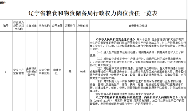 根据《中华人民共和国安全生产法》第十七条规定,结合我局“三定”方案,现将我局安全生产权力和责任清单印发给你们。请将此通知转发到辖区内粮食和物资储备部门、所属企事业单位和辖区内粮食流通、加工企业。
